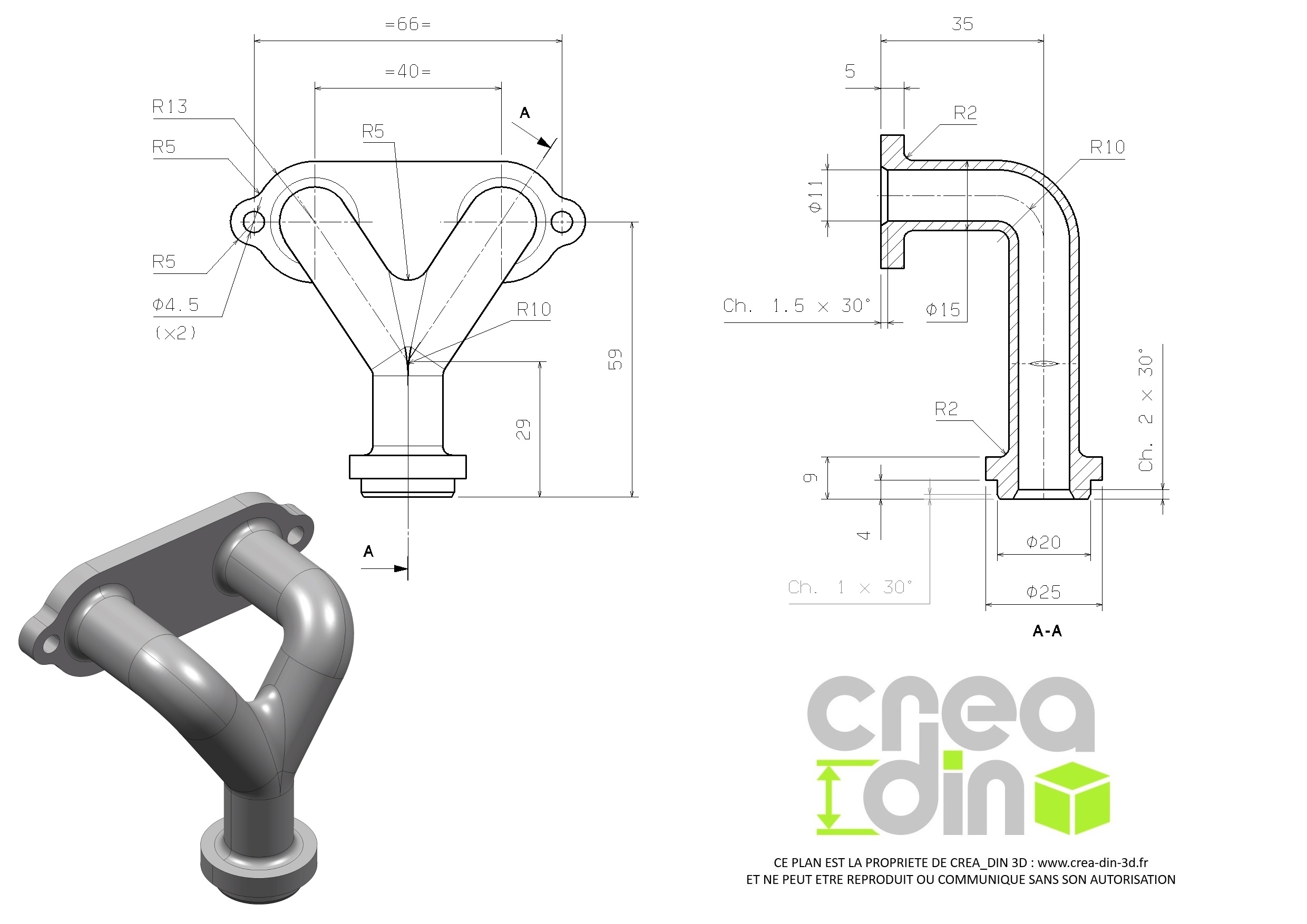 Suivez notre méthodologie afin de modéliser cette pièce en 3D étape par étape à partir d'un plan 2D