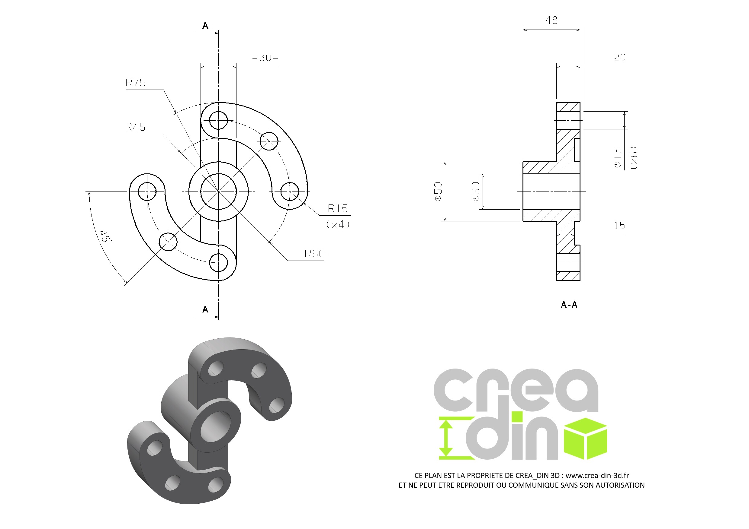 Suivez notre méthodologie afin de modéliser cette pièce en 3D étape par étape à partir d'un plan 2D