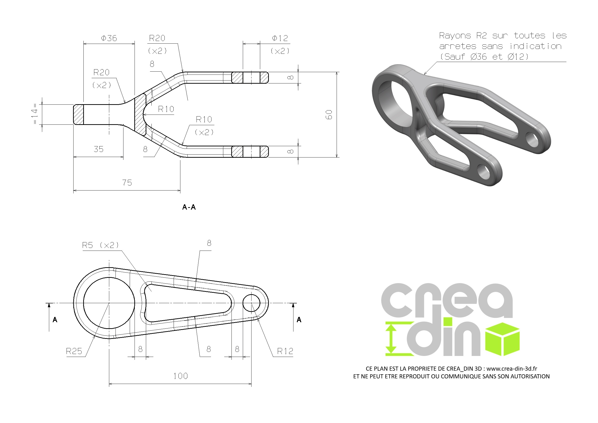 Suivez notre méthodologie afin de modéliser cette pièce en 3D étape par étape à partir d'un plan 2D